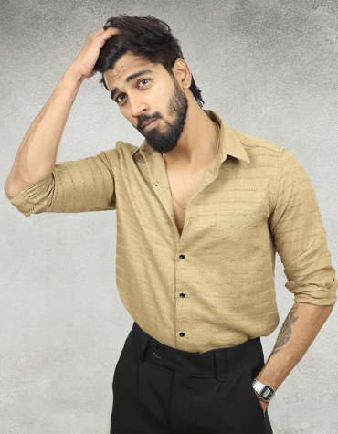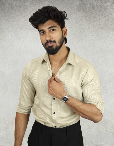 Cream Textured Designer Shirt