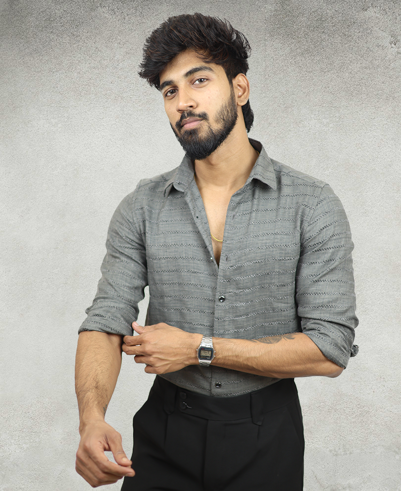 Grey Textured Designer Shirt