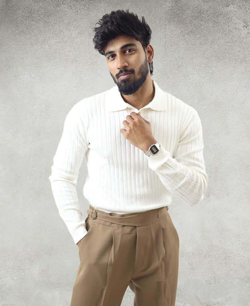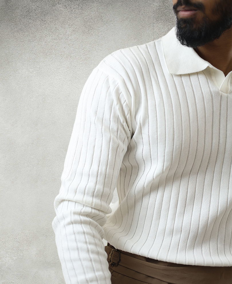 White Knitted Collar Tee